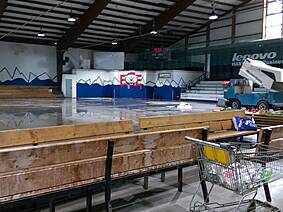 Wie man auf den Bildern unten sieht ist die Fläche noch nicht mal vollständig getrocknet, trotzdem haben es rund 30 unermüdliche Helfer in kürzester Zeit geschafft die Bande, Netze, Zeitnehmer-Box, Spielerbänke, etc. abzubauen und das Icehouse einer großen Lagerhalle ähneln zu lassen. Der besondere Dank gilt dabei neben Fritz Haaf (dem Vorstand des ECE) vor allem der 1. Mannschaft der Eisbären sowie den Rhein-Neckar Gladiators. Denn die Gladiators haben sich dabei hauptsächlich dem Bandenabbau angenommen, damit Sie diese im Gegenzug unentgeltlich übernehmen und auf Ihrem eigenen Hockey-Platz in Ketsch wieder aufbauen können. Da ursprünglich als einzige Alternative die Verwertung der einzelnen Banden-Bestandteile im Raum stand, haben wir mit dieser Option für alle die bessere Lösung gefunden! Denn so wie die SAP-Arena den ECE mit der Bande unterstützt hat, konnte dies nun der ECE für die Gladiators tun.